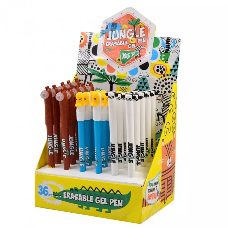Ручка гелева YES пиши-стирай "Jungle", 0,5мм, синя, мікс 3 диз