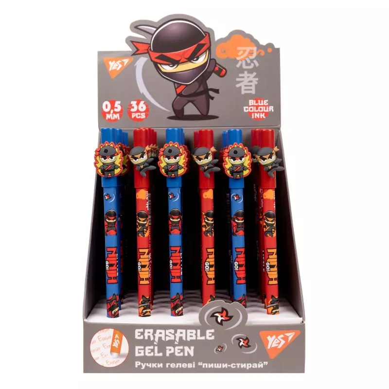 Ручка гелева YES пиши-стирай "Ninja" 0,5 мм, синя