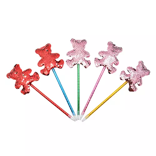 Ручка кулька з ведмедиком і паєтками синя 12шт/уп, ST01047