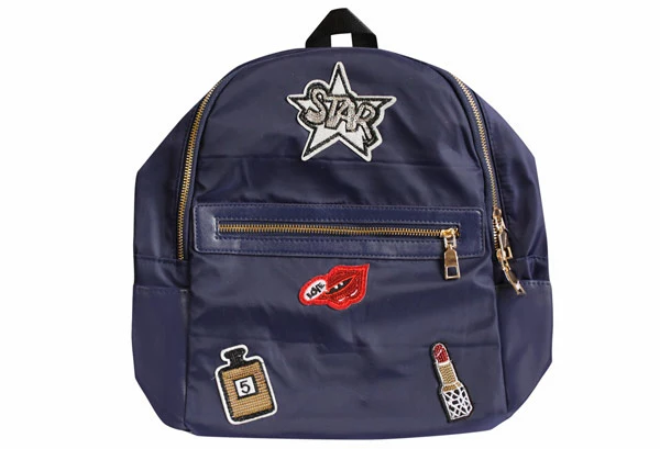 Рюкзак тканинний з аплікаціями. 1 основний відділ + 1 додатковий (синій)