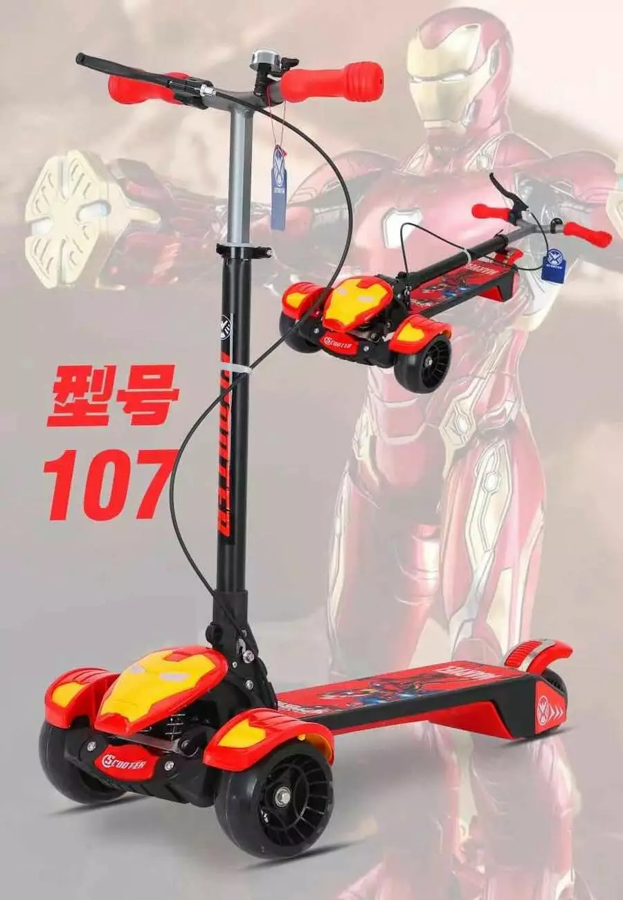 Самокат 107-OR мет.+пласт.,3кол.ПУ,2пер.135мм.,кермо80-94,муз.,світло,дзвінок,аморт.,руч.гальмо,бат.