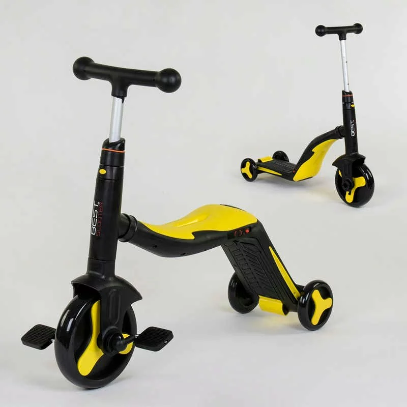Самокат 3в1 JT 10993 (1) Best Scooter, самокат-велобіг-велосипед, ЖОВТИЙ, світло, 8 мелодій, колеса PU, переднє колесо d = 20см, задні d = 11см