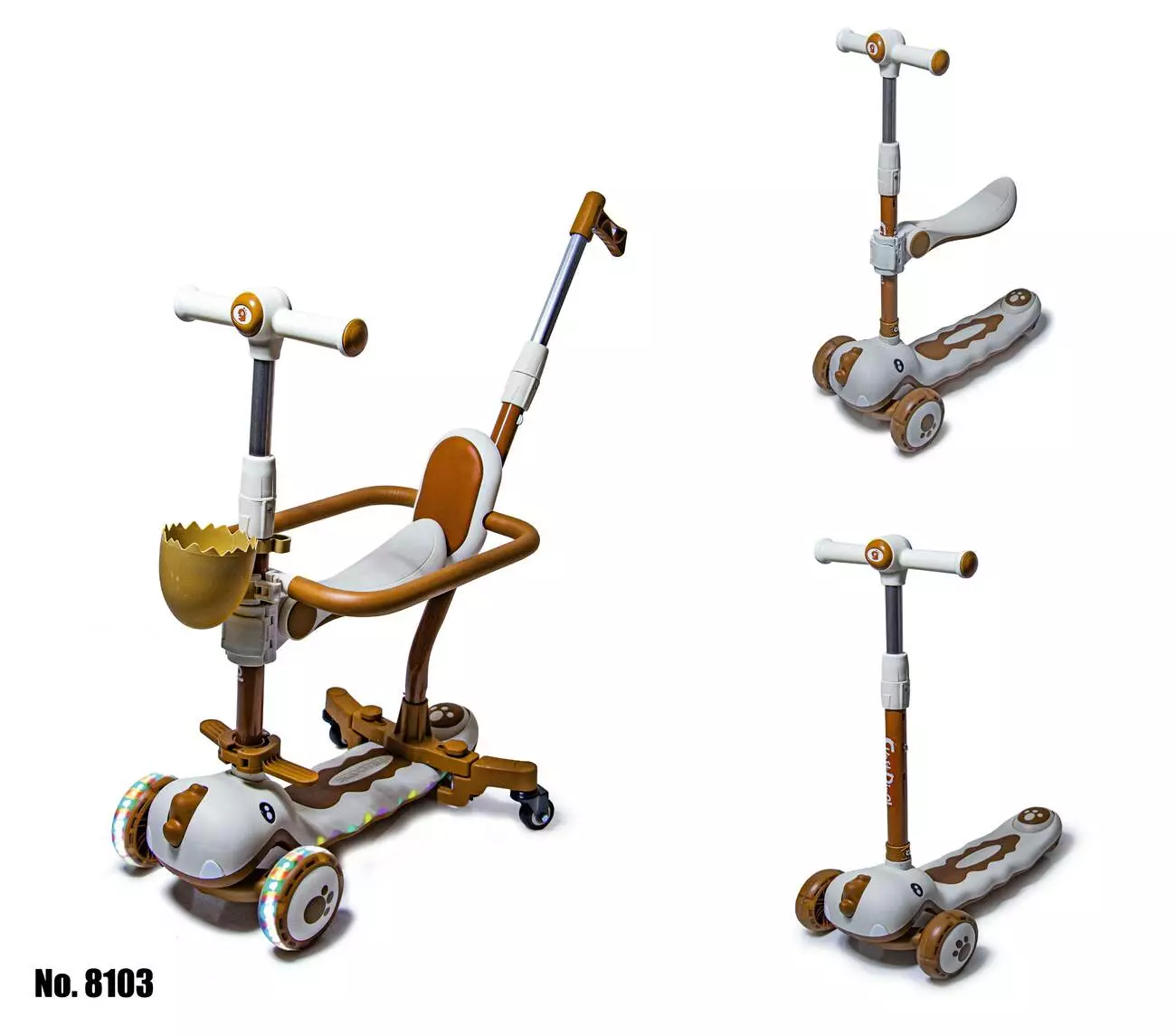 Самокат 5 в 1 Dinosaur 8103 Белый с Бортиком, Подсветкой и Музыкой