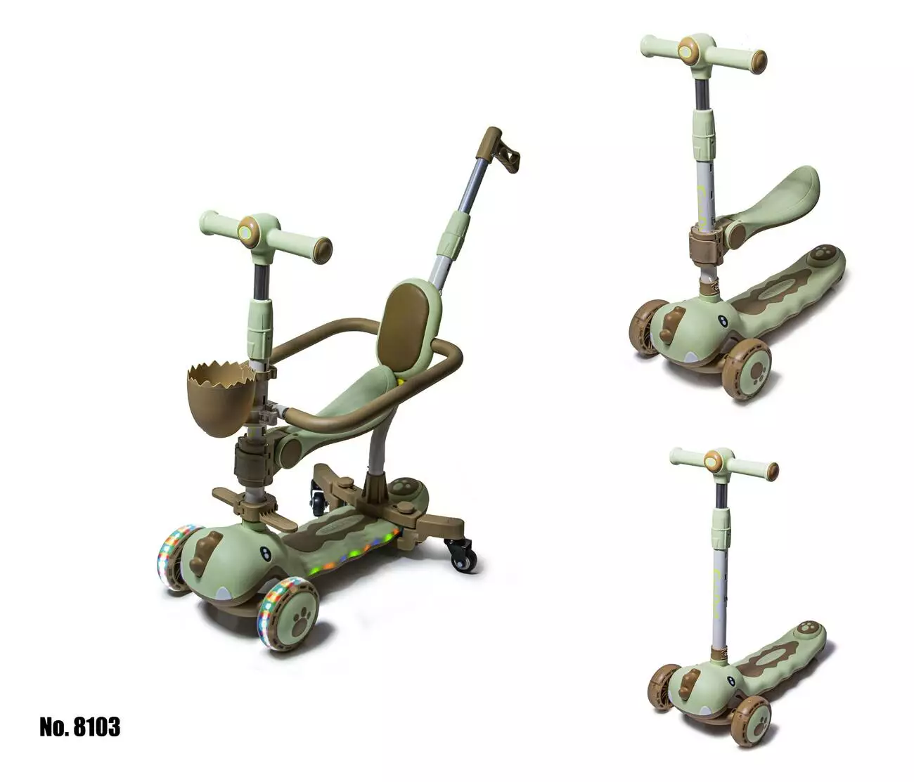 Самокат 5 в 1 Dinosaur 8103 Оливковый с Бортиком, Подсветкой и Музыкой