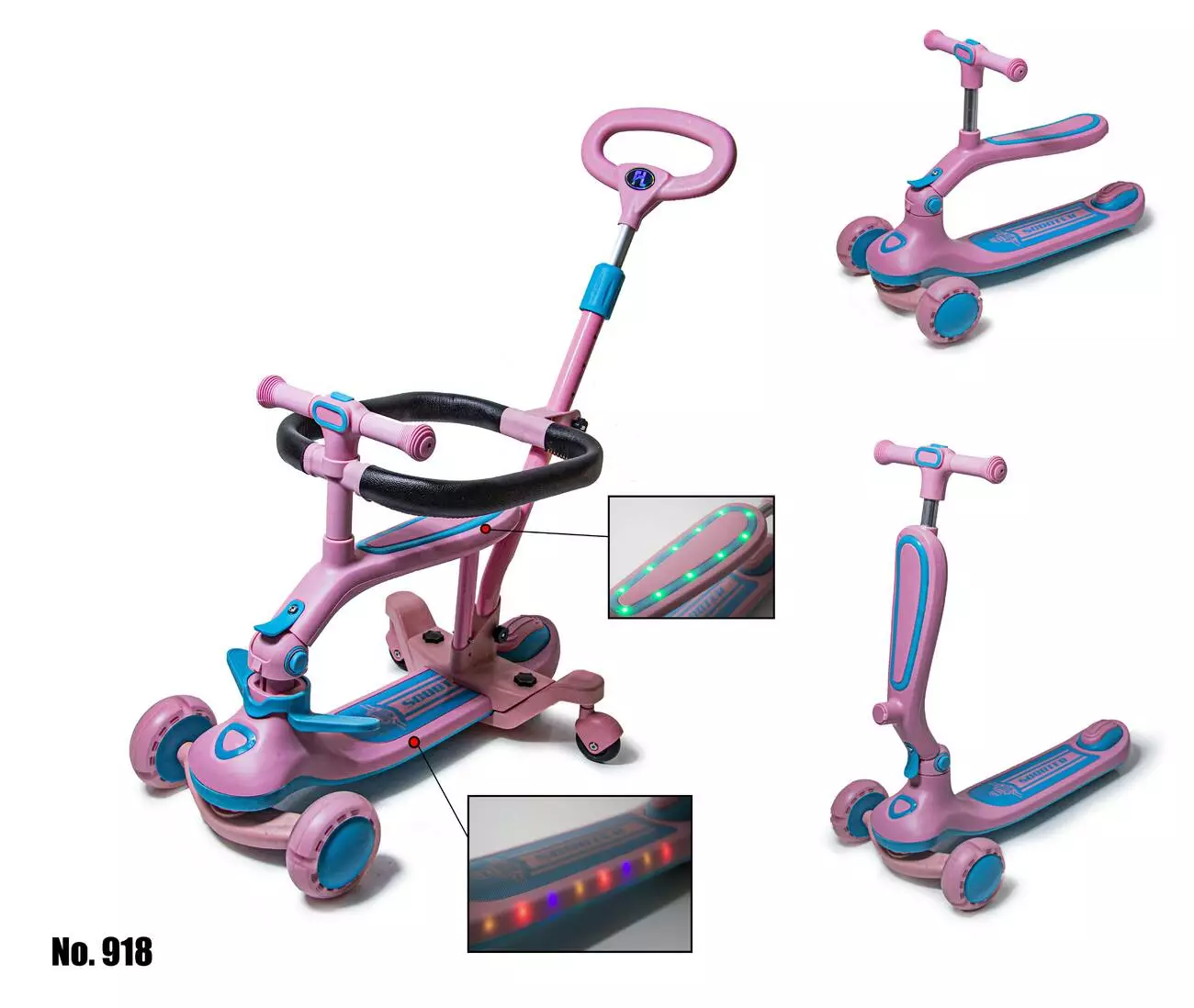 Самокат 5 в 1 Розовый 918 с Бортиком, Подсветкой и Музыкой