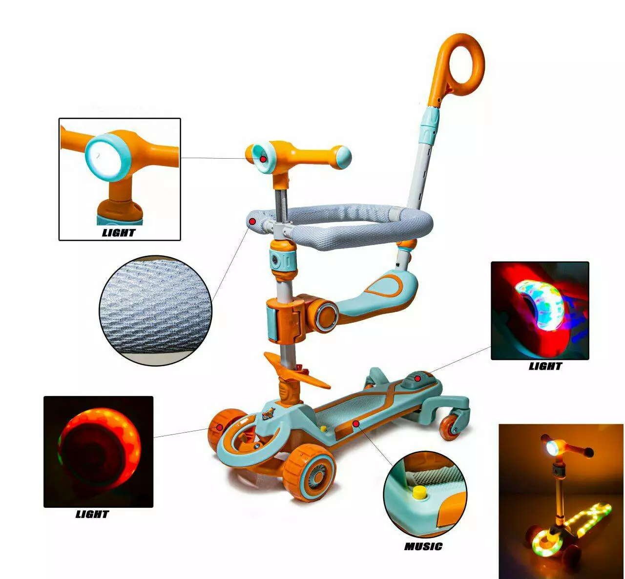 Самокат 5 в 1 Smart N-388 Оранжевый с Бортиком, Подсветкой и Музыкой