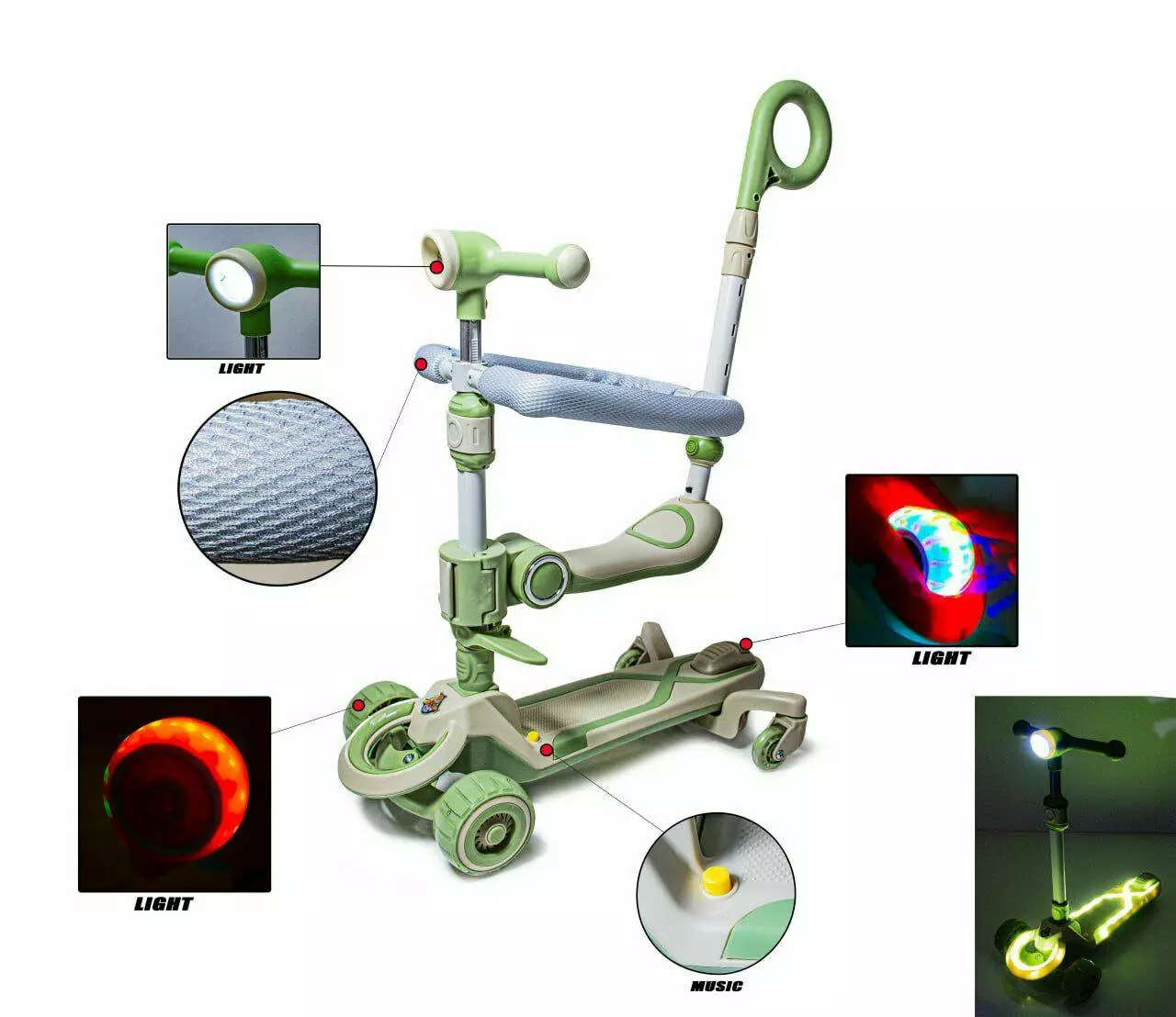 Самокат 5 в 1 Smart N-388 Зелёный с Бортиком, Подсветкой и Музыкой