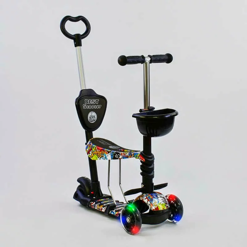 Самокат 5в1 34760 (1) Best Scooter, АБСТРАКЦІЯ, PU колеса, ПІДСВІЧУВАННЯ КОЛІС, в коробці