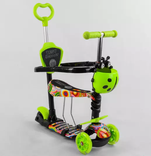 Самокат 5в1 S 6732 (1) Best Scooter, АБСТРАКЦИЯ, с защитным бампером, PU колеса, ПОДСВЕТКА КОЛЕС, в коробке