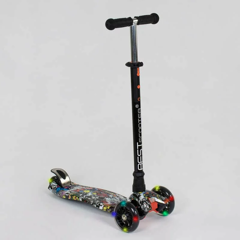 Самокат А 24642 / 779-1386 MAXI ""Best Scooter"" (1) пластмасовий, 4 колеса PU, СВІТЛО, трубка керма алюмінієва, d = 12см, в коробці