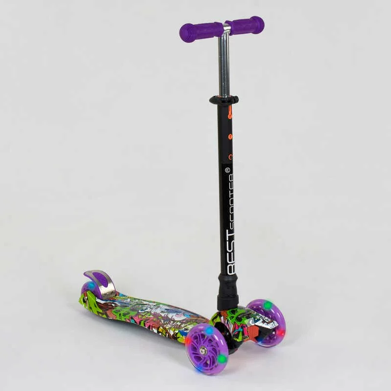 Самокат А 24646 / 779-1390 MAXI ""Best Scooter"" (1) пластмасовий, 4 колеса PU, СВІТЛО, трубка керма алюмінієва, d = 12см, в коробці