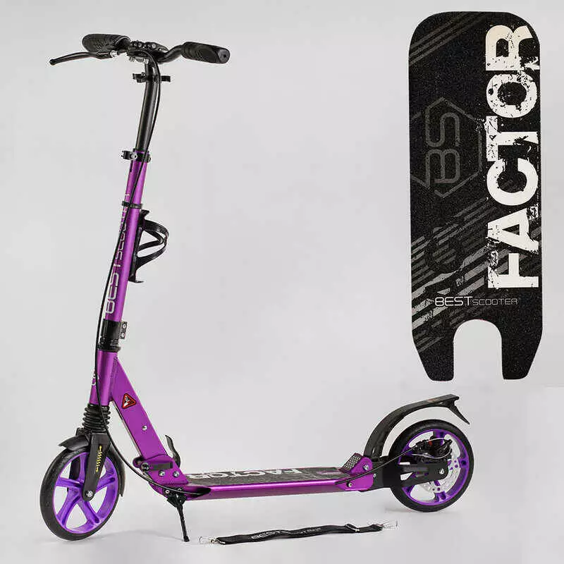 Самокат алюмінієвий Best Scooter BS-54065 (4) ""Factor"", ручной дисковый тормоз, диаметр PU колес - 200мм, 2 амортизатора, подстаканник, в коробке