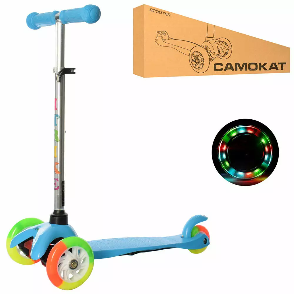 Самокат BB 3-013-4-A-BL MINI,алюм+пласт,3кол.ПУ-світло,2пер120мм,заднє70мм,підн29-11см,кермо60/69см.