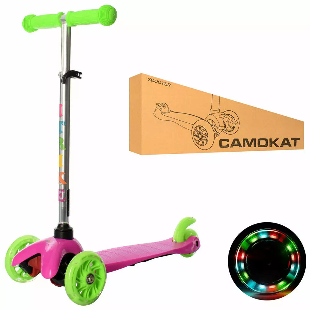 Самокат BB 3-013-4-C-P MINI, алюм+пласт,3колПУ-світло2пер120мм,задн.73мм.,підн.29-11см,кермо59/68см.