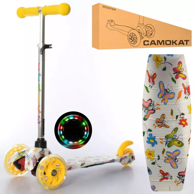 Самокат BB 3-013-4-F-Y MINI,алюм+пласт.,3колПВХ-світло,2пер120мм,задн70мм,підн.29-11см,кермо60/69см.