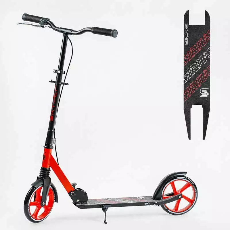 Самокат двоколісний S-16312 ""Skyper"" (4) ""Sirius"", чорно-червоний, колеса PU 200 мм, 1 аммортизатор, ручне гальмо, в коробці