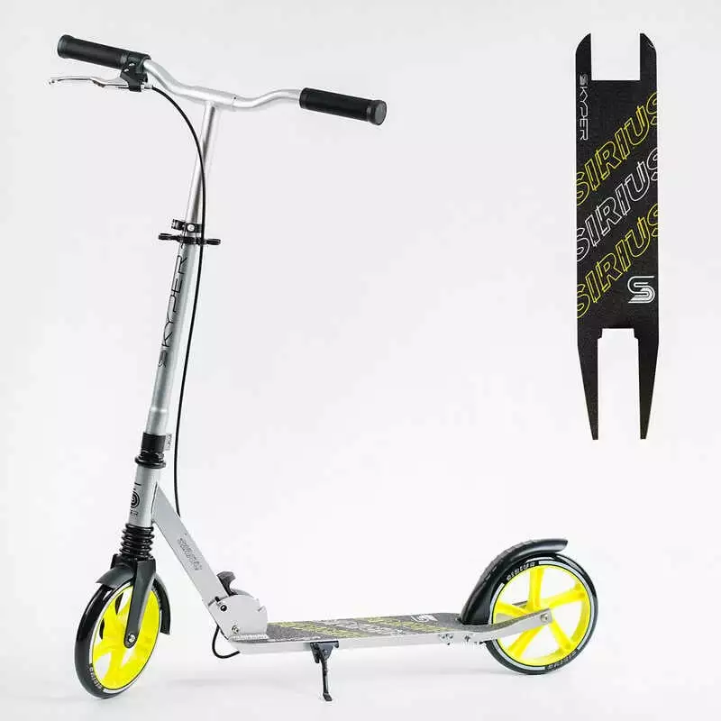 Самокат двоколісний S-18988 ""Skyper"" (4) ""Sirius"", сіро-жовтий, колеса PU 200 мм, 1 амортизатор, ручне гальмо, в коробці