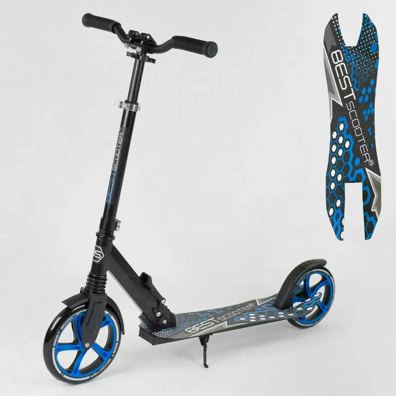 Самокат 49716 (2) Best Scooter, ЧОРНИЙ, зажим руля, переднє колесо PU - 22 см, заднє колесо PU - 20 см, 1 амортизатор, в коробці