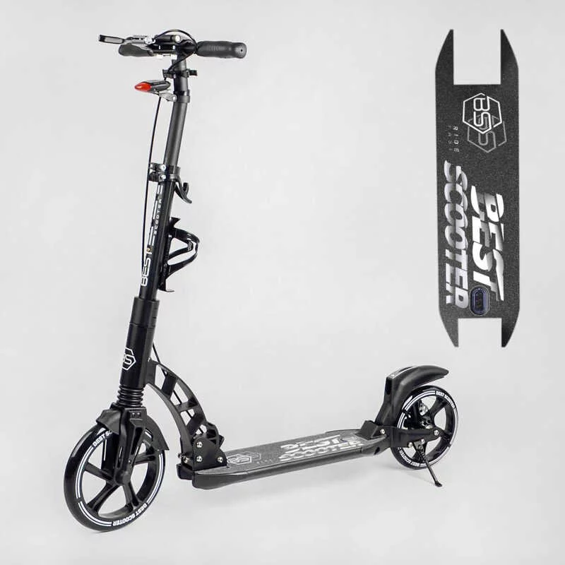 Самокат двоколісний ""Best Scooter"" 24215-B (2) ФАРА, переднє колесо PU 230 мм, заднє колесо 200мм, 2 амортизатори, дискове гальмо, затискач керма