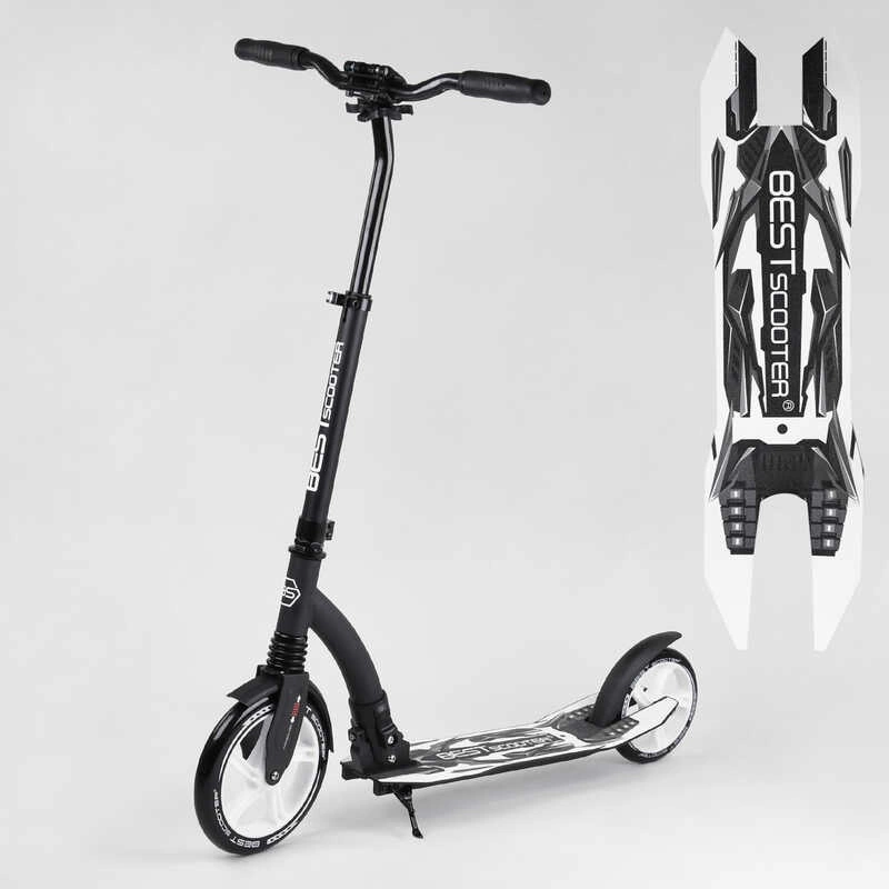 Самокат двоколісний Best Scooter 75343 (4) колеса PU - переднє 23 см, заднє - 20 см, 1 амортизатор, широкий руль, зажим руля, в коробці