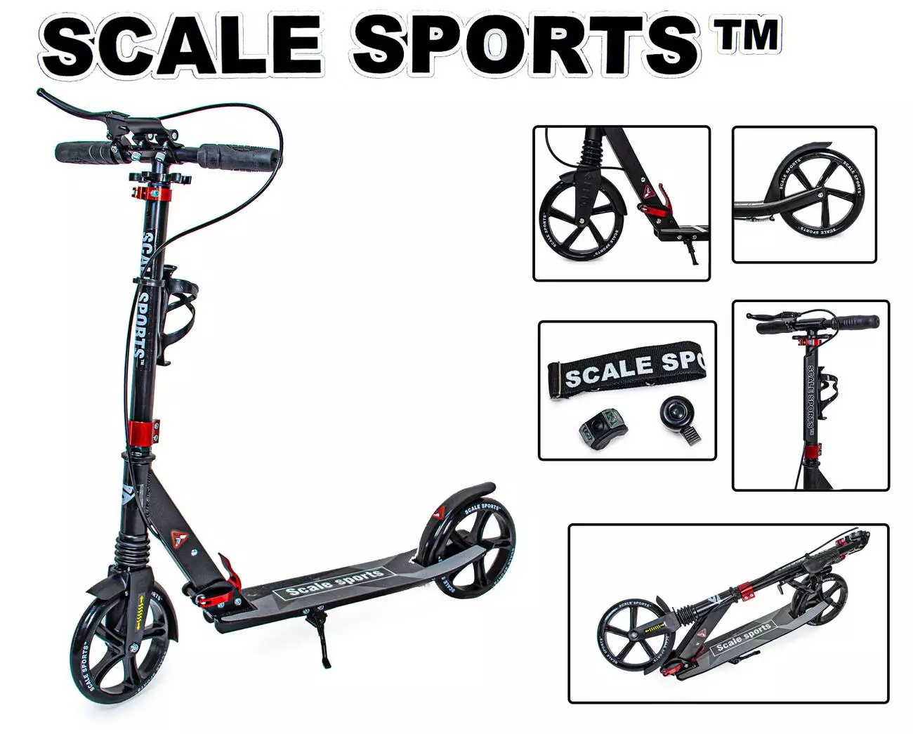 <p>Стильный самокат<strong> Scooter Scale Sports SS-08 с ручным тормозом</strong> разработан для подростков и взрослых американской компанией <strong>Scale Sports.</strong></p><br /> <p><strong>Особенности самоката Scale Sports SS-08</strong><strong>:</strong></p><br /> <ul><br /> <li>Складная конструкция;</li><br /> <li>Дзвонок на руле.</li><br /> <li>LED-фонарик (три режима подсветки)</li><br /> <li>Ручной тормоз выведен на заднее колесо;</li><br /> <li>Ножной металлический тормоз;</li><br /> <li>Регулируемый руль на три положения;</li><br /> <li>Резиновые ручки;</li><br /> <li>Амортизатор -1 (передний);</li><br /> <li>Ножка для парковки (подножка)<strong>;</strong></li><br /> <li>Нескользящее покрытие платформы ;</li><br /> <li>Максимальная нагрузка: 100 кг;</li><br /> </ul><br /> <p><strong>Технические характеристики самоката Scale Sports SS-08 :</strong></p><br /> <ul><br /> <li>Тип самоката: городской;</li><br /> <li>Количество шт., тип колес: 2 литых;</li><br /> <li>Материал колес: полиуретан;</li><br /> <li>Размер переднего и заднего колеса – 200 мм;</li><br /> <li>Габаритный размер (ДхШ): 88х11</li><br /> <li>Высота регулируется в 3 положениях: <a href="tel:91/98/105">80/88/96</a> см;</li><br /> <li>Платформа: 52х11 см;</li><br /> <li>Вес самоката: 4.5 кг;</li><br /> <li>Материал рамы: алюминий;</li><br /> <li>Цвет: черный;</li><br /> <li>Возрастная группа: для подростков и взрослых, <strong>7</strong>+;</li><br /> </ul><br />