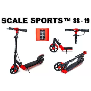 <p>Стильный самокат<strong> Scale Sports SS-19 с ручным тормозом</strong> разработан для подростков и взрослых американской компанией <strong>Scale Sports.</strong></p><br /> <p><strong>Особенности самоката Scale Sports SS-19</strong><strong>:</strong></p><br /> <ul><br /> <li>Складная конструкция;</li><br /> <li>Ручной тормоз выведен на заднее колесо;</li><br /> <li>Ножной тормоз;</li><br /> <li>Регулируемый руль на три положения;</li><br /> <li>Резиновые ручки;</li><br /> <li>Ножка для парковки (подножка)<strong>;</strong></li><br /> <li>Максимальная нагрузка: 80 кг;</li><br /> </ul><br /> <p><strong>Технические характеристики самоката Scale Sports SS-19 :</strong></p><br /> <ul><br /> <li>Тип самоката: городской;</li><br /> <li>Количество шт., тип колес: 2 литых;</li><br /> <li>Материал колес: полиуретан;</li><br /> <li>Размер переднего и заднего колеса – 180 мм;</li><br /> <li>Габаритный размер (ДхШ): 85х12</li><br /> <li>Высота регулируется в 3 положениях: <a href="tel:91/98/105">82/89/9</a>7 см;</li><br /> <li>Платформа: 51х12 см;</li><br /> <li>Вес самоката: 4.8 кг;</li><br /> <li>Материал рамы: алюминий;</li><br /> <li>Возрастная группа: для подростков и взрослых, <strong>7</strong>+;</li><br /> </ul><br />