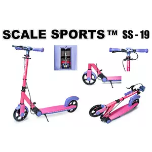 <p>Стильный самокат<strong> Scale Sports SS-19 с ручным тормозом</strong> разработан для подростков и взрослых американской компанией <strong>Scale Sports.</strong></p><br /> <p><strong>Особенности самоката Scale Sports SS-19</strong><strong>:</strong></p><br /> <ul><br /> <li>Складная конструкция;</li><br /> <li>Ручной тормоз выведен на заднее колесо;</li><br /> <li>Ножной тормоз;</li><br /> <li>Регулируемый руль на три положения;</li><br /> <li>Резиновые ручки;</li><br /> <li>Ножка для парковки (подножка)<strong>;</strong></li><br /> <li>Максимальная нагрузка: 80 кг;</li><br /> </ul><br /> <p><strong>Технические характеристики самоката Scale Sports SS-19 :</strong></p><br /> <ul><br /> <li>Тип самоката: городской;</li><br /> <li>Количество шт., тип колес: 2 литых;</li><br /> <li>Материал колес: полиуретан;</li><br /> <li>Размер переднего и заднего колеса – 180 мм;</li><br /> <li>Габаритный размер (ДхШ): 85х12</li><br /> <li>Высота регулируется в 3 положениях: <a href="tel:91/98/105">82/89/9</a>7 см;</li><br /> <li>Платформа: 51х12 см;</li><br /> <li>Вес самоката: 4.8 кг;</li><br /> <li>Материал рамы: алюминий;</li><br /> <li>Возрастная группа: для подростков и взрослых, <strong>7</strong>+;</li><br /> </ul><br />