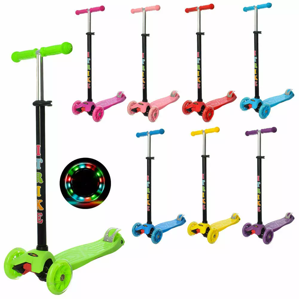 Самокат JR 3-003-A MAXI, колеса 3 шт. ПУ, 8 кольорів, кермо, підніжка, світло, кул., 32-13 см.
