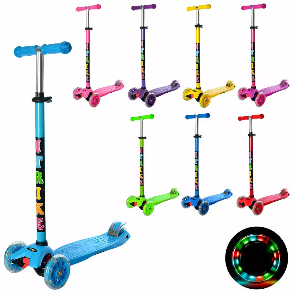 Самокат JR 3-003-B MAXI, алюм.+плас., 3 колеса ПВХ, 2 пер.120 мм-світло, кермо, підніжка, 8 кольорів