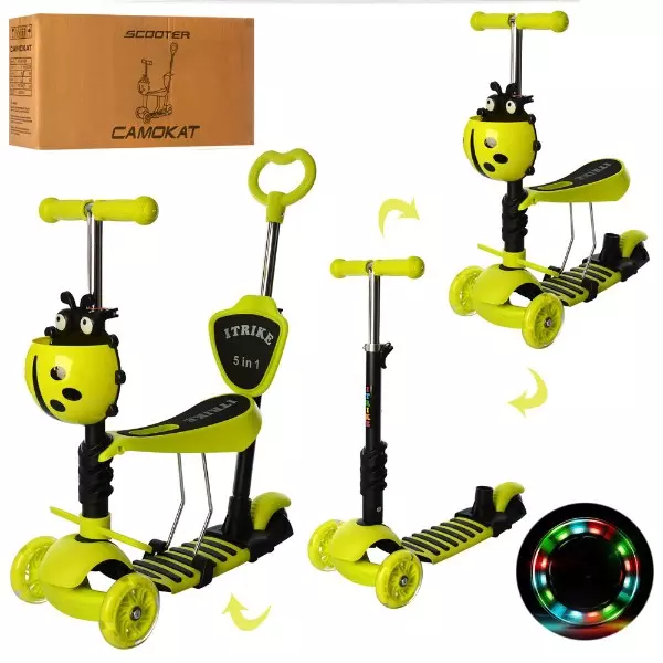 Використовувати дитячий самокат iTrike JR 3-026 під час прогулянок дуже корисно для розвитку координації малюка. Рухливі ігри та навантаження на ноги дозволяють тренувати всі необхідні навички та вчитися утримувати рівновагу. Рама і корпус самокату виготовлені з легкого алюмінієвого сплаву, який максимально полегшує конструкцію, дозволяючи тим самим дитині здійснювати різні маневри. Завдяки такій легкій конструкції дитячий самокат не завдасть шкоди дитині навіть під час падіння. Самокат iTrike JR 3-026 можна використовувати як самокат, беговел, каталку з батьківською ручкою, штовхалку. Цей дитячий транспорт має додаткове сидіння, яке можна встановити та катати найменших. Передні колеса самокату світяться, виготовлені з полівінілхлориду. Воно міцно кріпиться до рами самоката, використовуючи його, малюк може користуватися самокатом як біговіллом. Особливості самокату 5 в 1 iTrike JR 3-026: Вік: від 1 до 6 років Стійка та надійна конструкція Укомплектований сидінням, спинкою, кошиком Висота керма: 49.5-73 см Поворот здійснюється нахилом керма Неслизькі ручки та підніжка Матеріал: полегшений алюміній та міцний карбон пласт Поліуретанові прозорі колеса Колеса світяться 3 рівня регулювання висоти сидіння Ніжне гальмо на задньому колесі Максимальне навантаження на самокат: 50 кг Максимальне навантаження на сидіння: 30 кг Платформа: 29х11 см Передні колеса: 12 см Заднє колесо: 7 см