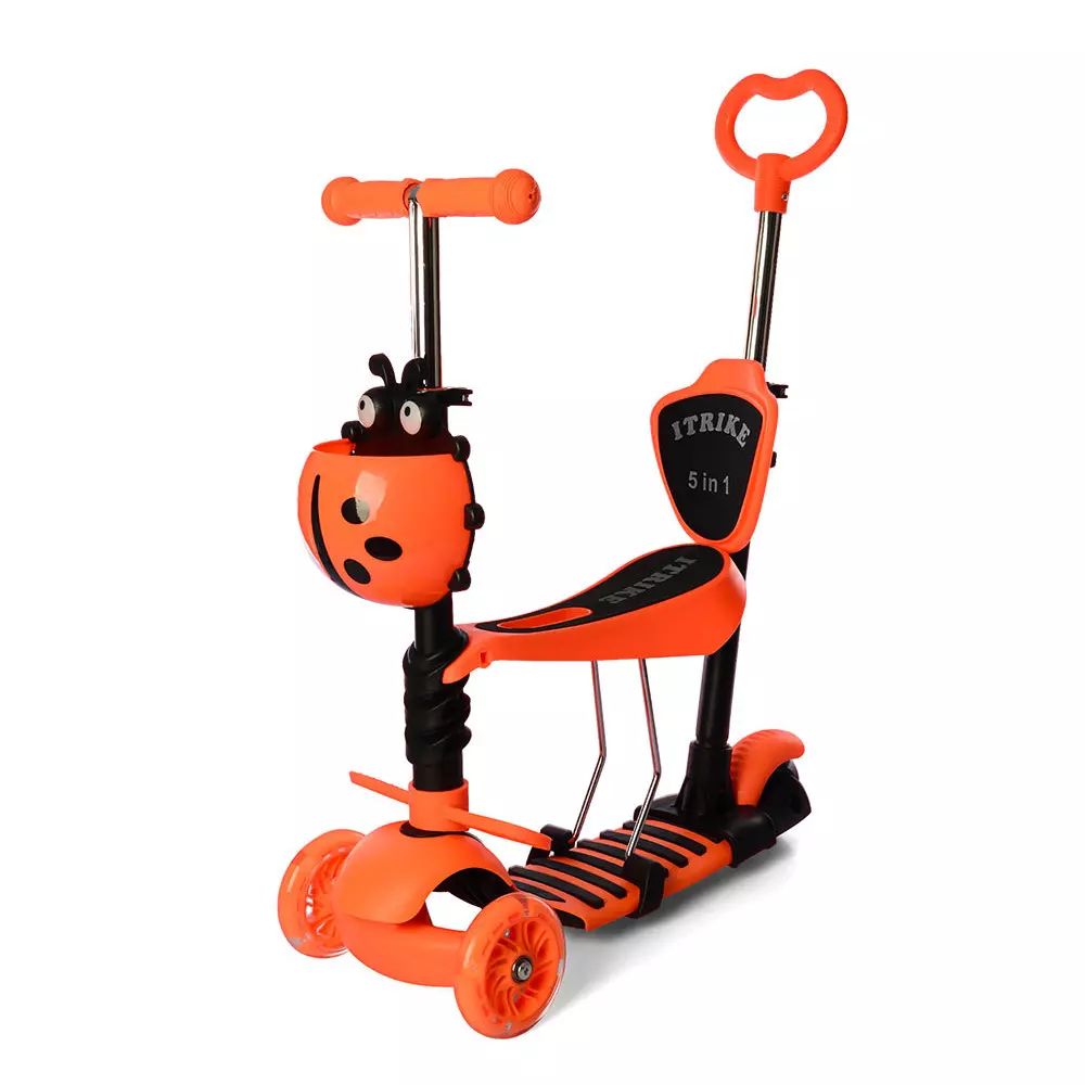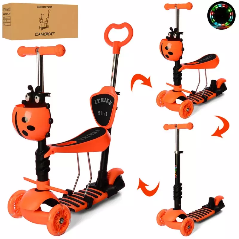 Дитячий самокат JR 3-026-OR , MAXI 5 в 1, помаранчевий - має надійну та стійку конструкцію, що робить їзду на ньому максимально безпечною, такий самокат забезпечить вашому малюку веселе та цікаве проведення часу, катання на ньому допоможе покращити координацію. Дитячий самокат JR 3-026-OR має зручне сидіння зі спинкою, висоту керма можна регулювати під ріст користувача, дана модель має якісні поліуретанові колеса, передні обладнані красивим підсвічуванням, що робить їзду ще цікавішою. Дитячий самокат JR 3-026-OR є стильною, комфортною і функціональною моделлю, яка зможе стати відмінним подарунком для вашої дитини, самокат може виконувати роль беговела, ззаду у нього є ручка завдяки їй батьки зможуть катати дитину. Характеристики дитячого самокату JR 3-026-OR : 5 в 1: самокат розрахований на 5 вікових груп Виконує функції: самоката, беговела та каталки Коліщатка з поліуретану - 3 шт. Діаметр передніх коліс – 120 мм Діаметр заднього колеса – 95 мм Стійка та безпечна конструкція Батьківська ручка (знімається) Висота керма регулюється – 75-82 см. Сидіння зі спинкою (знімне) Розмір підніжки: 34х13 см Матеріал: сталь, пластмаса