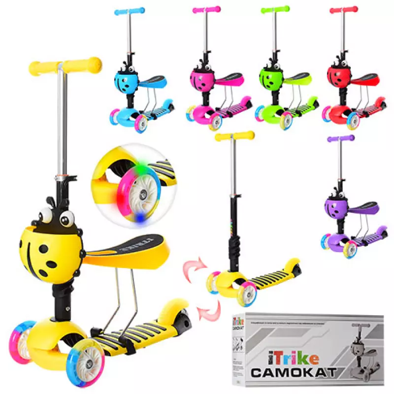Самокат JR 3-054-B 3 в 1 (біговел), алюм.+пласт., 3 колеса ПУ, кермо, 6 кольорів.