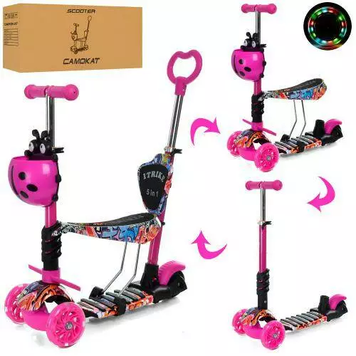 Самокат JR 3-058-I-WP17 MAXI, 5в1(біговел), сталь+пласт, 3кол.ПУ, 2пер.120мм-світло, кермо, підніжка