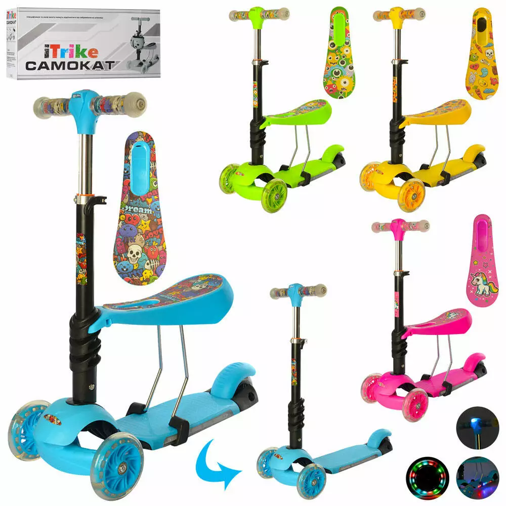 Самокат JR 3-076-A MAXI,3в1(біговел),сталь+пласт.,кол.3шт.,2пер.ПВХ120мм-світло,кермо,фара,4кол.,кор