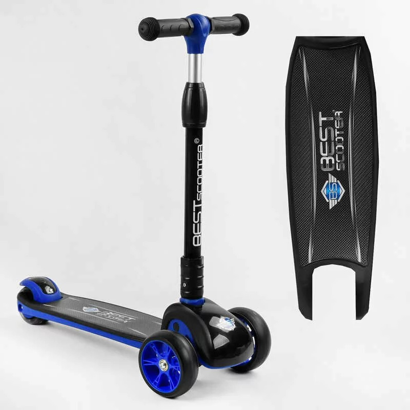 Самокат триколісний 22107 Best Scooter (6) СИНІЙ, складане алюмінієве кермо, 3 колеса PU зі світлом, d переднього 120х40мм, d заднього 80х24мм