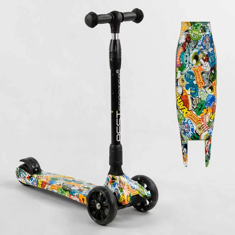 Самокат триколісний Best Scooter 32-655 MAXI (6) складане алюмінієве кермо, 3 колеса PU зі світлом, переднє 130х35 мм, заднє 80х45 мм, в коробці