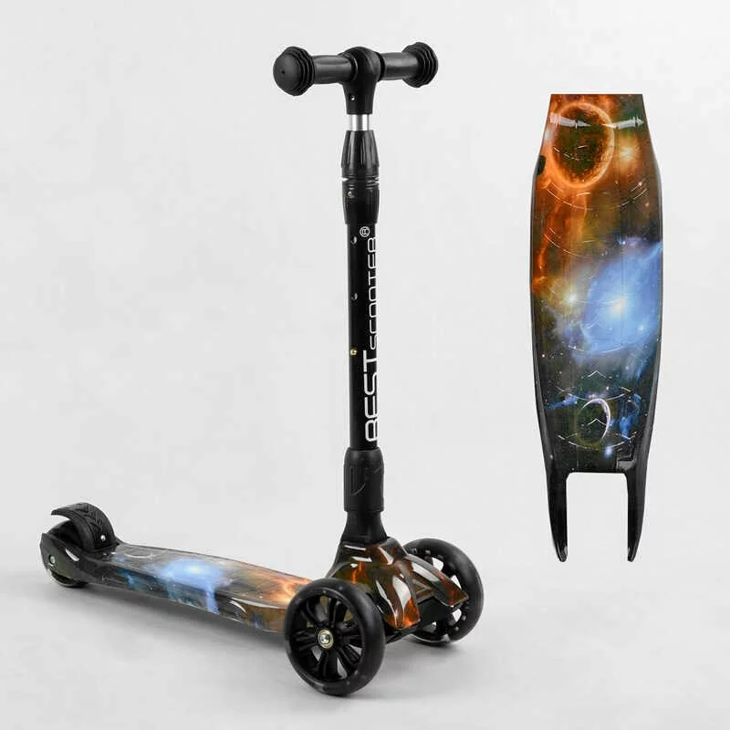 Самокат триколісний Best Scooter 43-635 MAXI (6) складане алюмінієве кермо, 3 колеса PU зі світлом, переднє 130х35 мм, заднє 80х45 мм, в коробці