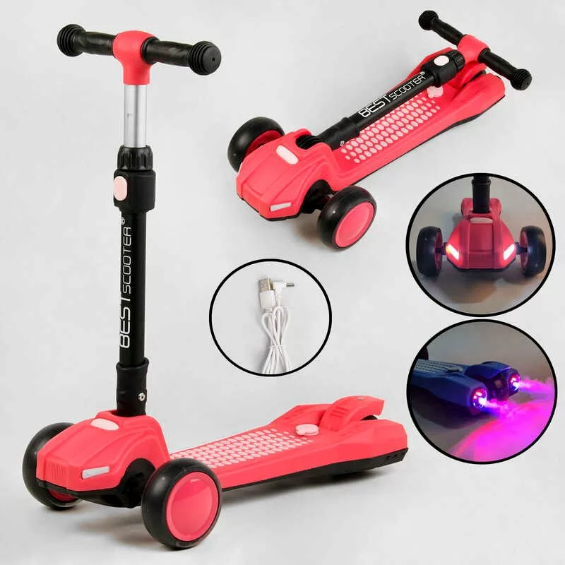 Самокат триколісний LT-11746 Best Scooter з парогенератором (6) складне кермо, ЗВУК МАШИНИ, ДИМ, СВІТЛО, пластмасовий, колеса PU 120х35мм, в коробці