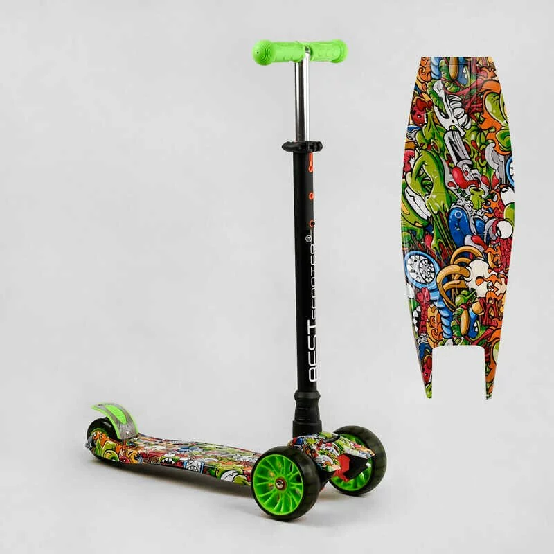 Самокат триколісний MAXI S - 11203 (1) “Best Scooter”, кермо знімне, колеса PU зі світлом, переднє 130х25 мм, задні здвоєні 80х45 мм, в коробці