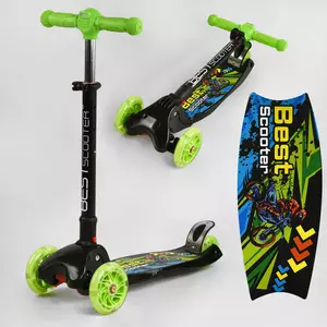 Самокат триколісний L-8574 Best Scooter (1) MAXI, складне кермо З ФАРОЙ, 4 колеса PU зі світлом, d=12 см, в коробці