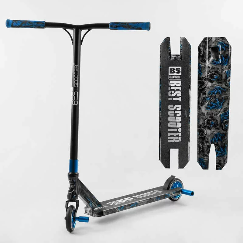 Самокат трюковий Best Scooter BS-77566 (4) HIC-система, ПЕГИ, алюмінієвий диск та дека з ПРИНТОМ, колеса PU, d = 110мм, ширина керма - 60 см, в коробці