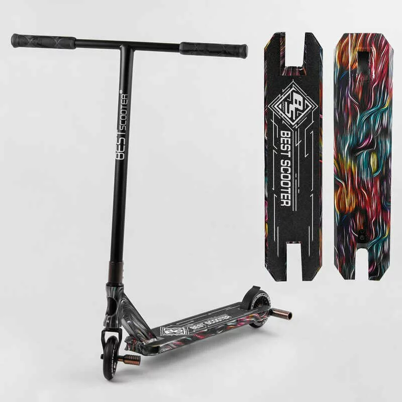 Самокат трюковий Best Scooter BS-99717 (4) HIC-система, ПЕГИ, алюмінієвий диск та дека з ПРИНТОМ, колеса PU, d = 110мм, ширина керма - 60 см, в коробці