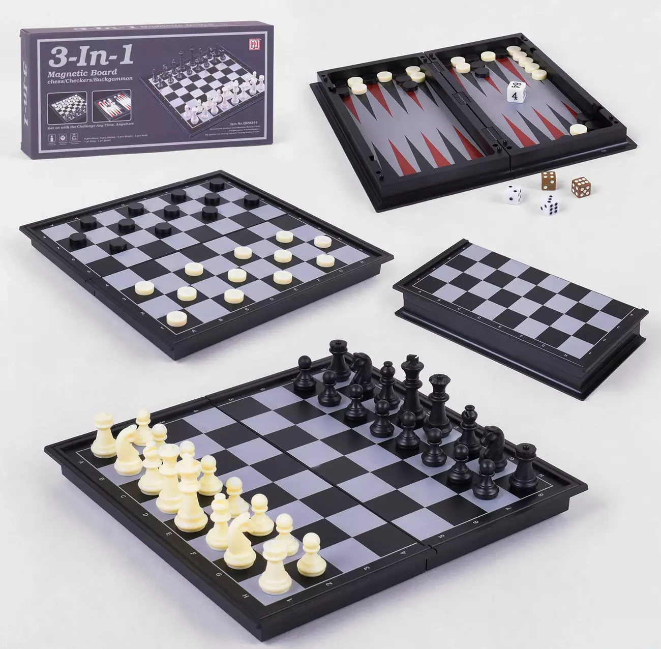 Шахи магнітні QX 56810 (48) 3 в 1, нарди, шашки, в коробці