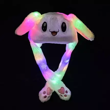 Шапка добре виглядає на дітей і дорослих; • Функції: підсвічування, управління вушками; • Ліва лапка запускає тільки ліву сторону, права лапка - праву; • Вушка запускаються за рахунок «груші» з повітрям, захована всередині лапи; • Для управління рухами вушок натискайте на кінчики лап; • Підсвічування працює від батарейок (LR44 6 шт. в комплекті); • Включається/вимикається при натисканні на серце лапки; • Прання не рекомендується.