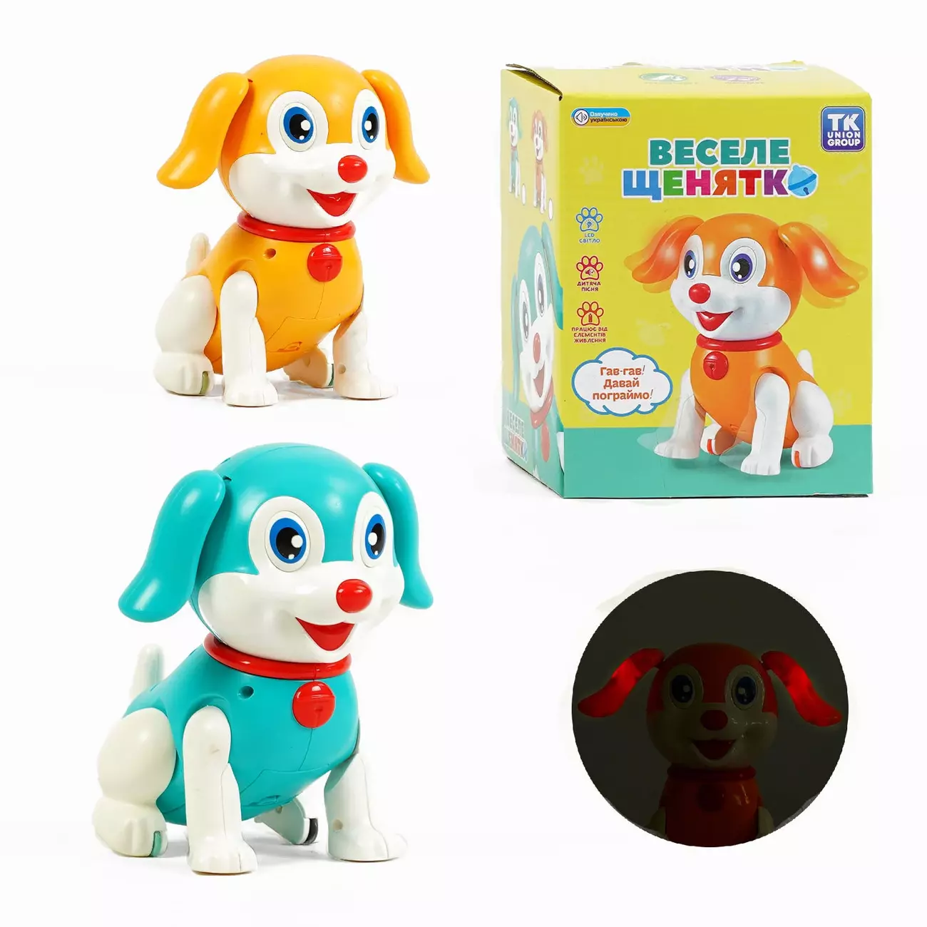 Щенятко ТК 10332 UK (72)"TK Group", 2 види, ОЗВУЧУВАННЯ УКРАЇНСЬКОЮ МОВОЮ, підсвічування, пісня, рухомі вушка, стрибає вперед, в коробці