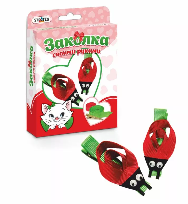 Прикрасьте шпильку для волосся своїми руками застосовуючи барвисті стрічки! Слідуючи інструкції, Ваша дитина не тільки навчитися виконувати копітку роботу але і продемонструє свою індивідуальність. Набір "Шпилька своїми руками" - відмінний подарунок маленьким модницям. Комплектація: 2 металевих шпильки, стрічки, клей, оченята