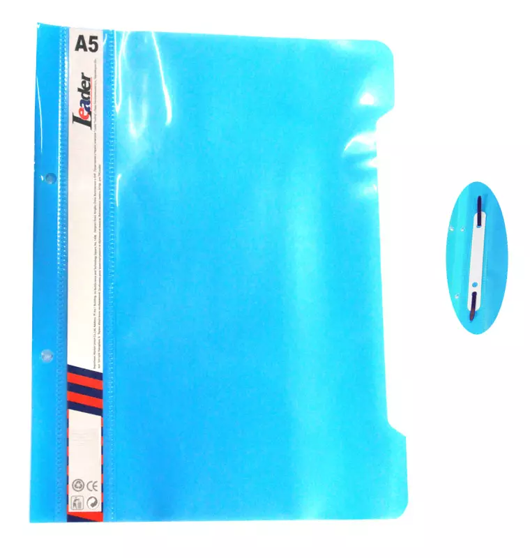 Швидкозшивач, пластик. прозор. верх А5 синій L (блакитний), KS320-А5 Leader