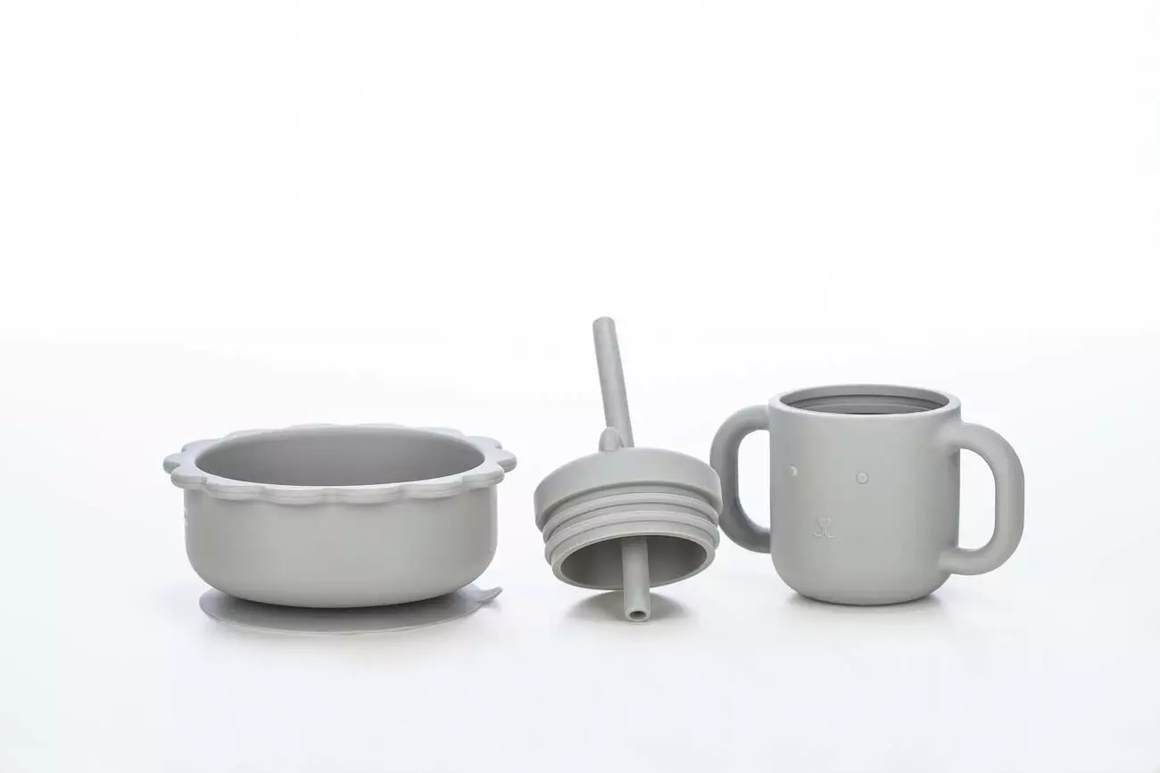 Силіконова миска дитяча FreeOn Bear, сіра