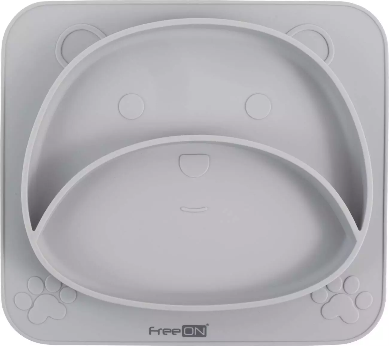 Силіконова тарілка дитяча FreeON Bear, сірий