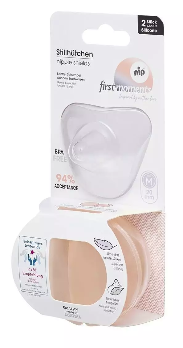 <p><em>Накладки на груди - ідеальна підтримка при проблемах з годуванням, а також при чутливих або болючих сосках. Оскільки накладки для сосків "first moment" мають тонкі стінки, створюється особливе відчуття природного годування.</em></p><p><em>Це відчуття годування також підтримується спеціальною трикутної формою накладок для сосків, яка забезпечує максимальний контакт шкіри між вами і вашою дитиною (контакт носа з грудьми).</em></p><p><em>Інноваційний і практичний двокамерний бокс забезпечує гігієнічне зберігання вже використаної насадки для сосків і надійно зберігає другу насадку для сосків в чистоті для наступного процесу грудного вигодовування.</em></p><p><strong>Основні переваги:</strong></p><ul><li><em>тонкостінні і м'які</em></li><li><em>відчуття природного годування</em></li><li><em>надійна підтримка при грудному вигодовуванні</em></li><li><em>ідеально підходить для подорожей - двокамерний бокс</em></li></ul><p><strong>Характеристики:</strong></p><ul><li><em>виготовлені з дуже м'якого натурального силікону.</em></li><li><em>не містить бісфенол А.</em></li><li><em>в наборі 2 накладки і футляр для зберігання.</em></li><li><em>розмір: М (20 мм).</em></li></ul>